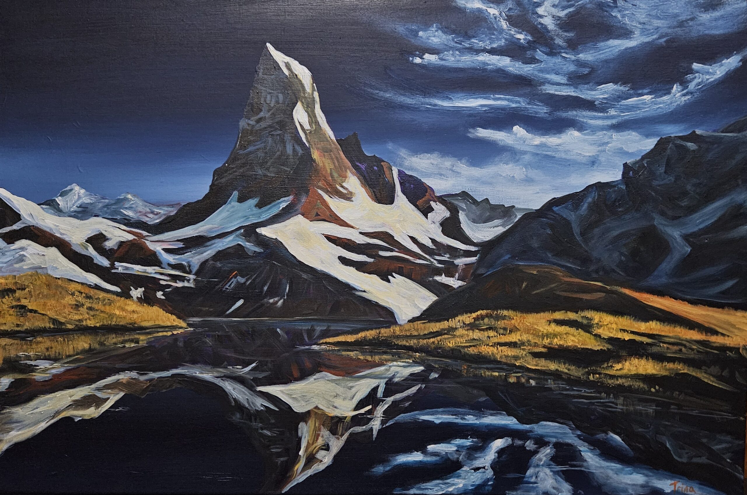 Trina is a born and raised resident of the Columbia Valley. She loves to paint in acrylic. The fast drying properties work well with her excitement levels! There are also so many great colours to play with, it’s limitless… From oil paint like heavy body to fluid acrylics for glazes – the range of products is great as well, it is extremely versatile.